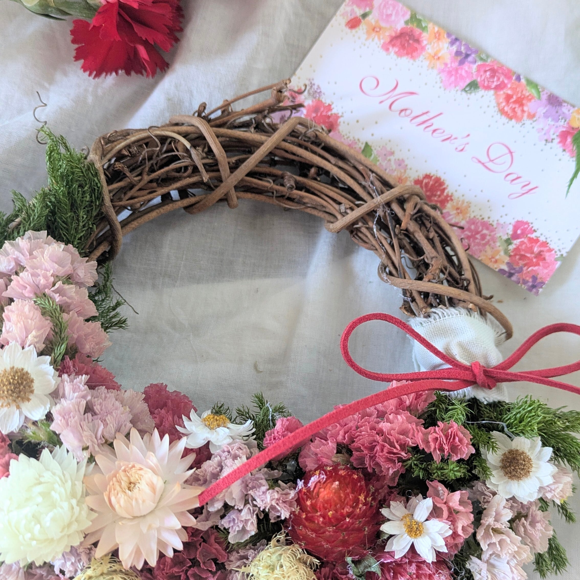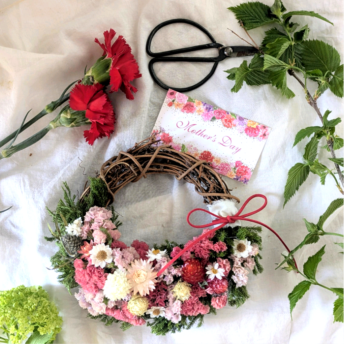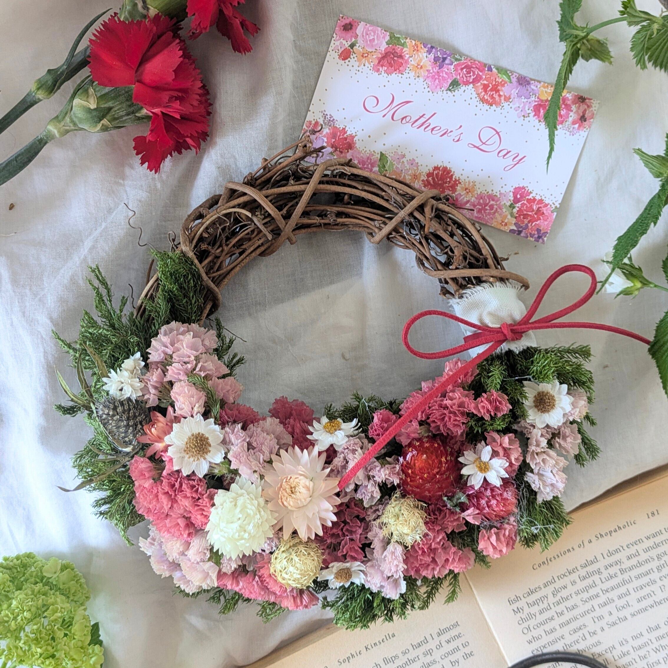 母の日の「ありがとう」を、そっと形にしたような特別なリース。
