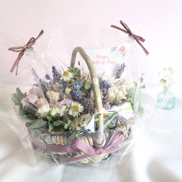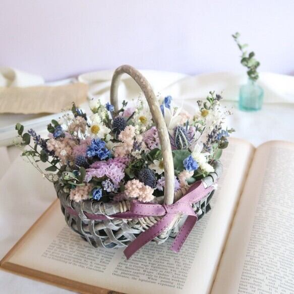 パープルのリボンはかごを使ってかわいく♡